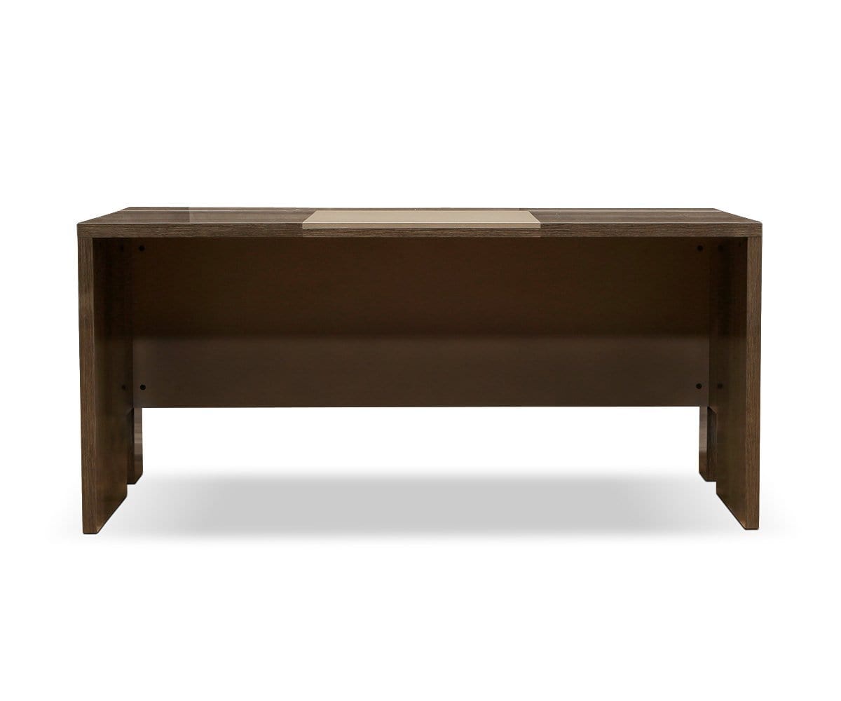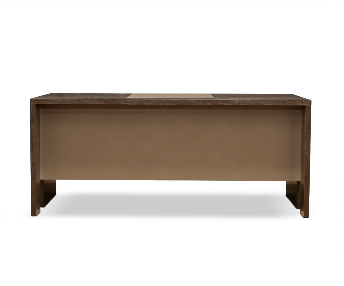 Welcome a stunning centerpiece into your office space. The Akana 71” desk is finished with a high gloss that highlights the wood grain gorgeously for a luxe, yet organic look. Smoky chrome accents complete the contemporary aesthetic.