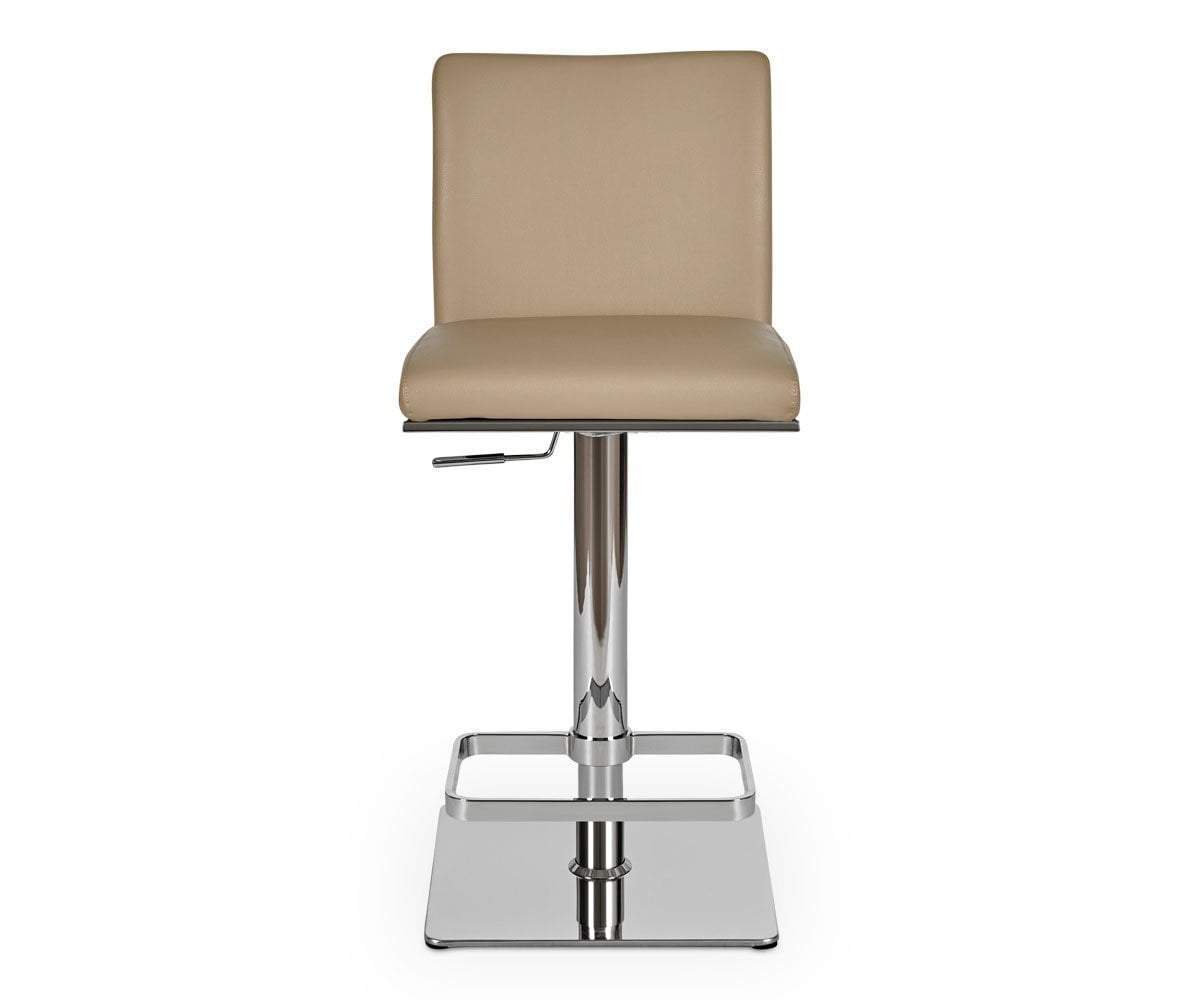 With the Alma adjustable counter and bar stool, there is no need to give up comfort for artistic, contemporary style. The padded seat and back in an easy-to-care-for vinyl are set atop an angular chrome adjustable base. Dress up your bar with distinctive grace.