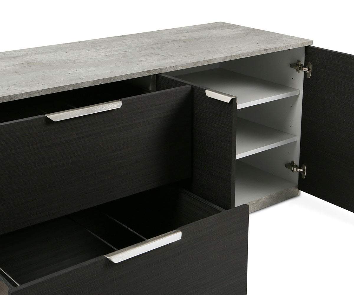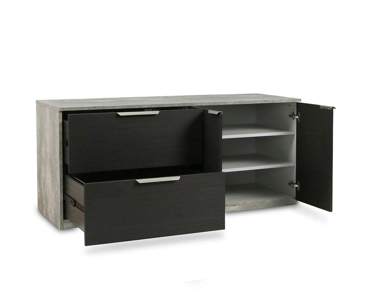 The Alva credenza provides an abundance of stylish storage for your workplace. Two deep drawers allow for filing and keeping important documents or office essentials organized. Two doors open to reveal a cabinet with adjustable shelves to accommodate any other work staples. Boasting handsome industrial style, this piece is a welcome addition to your busy office.