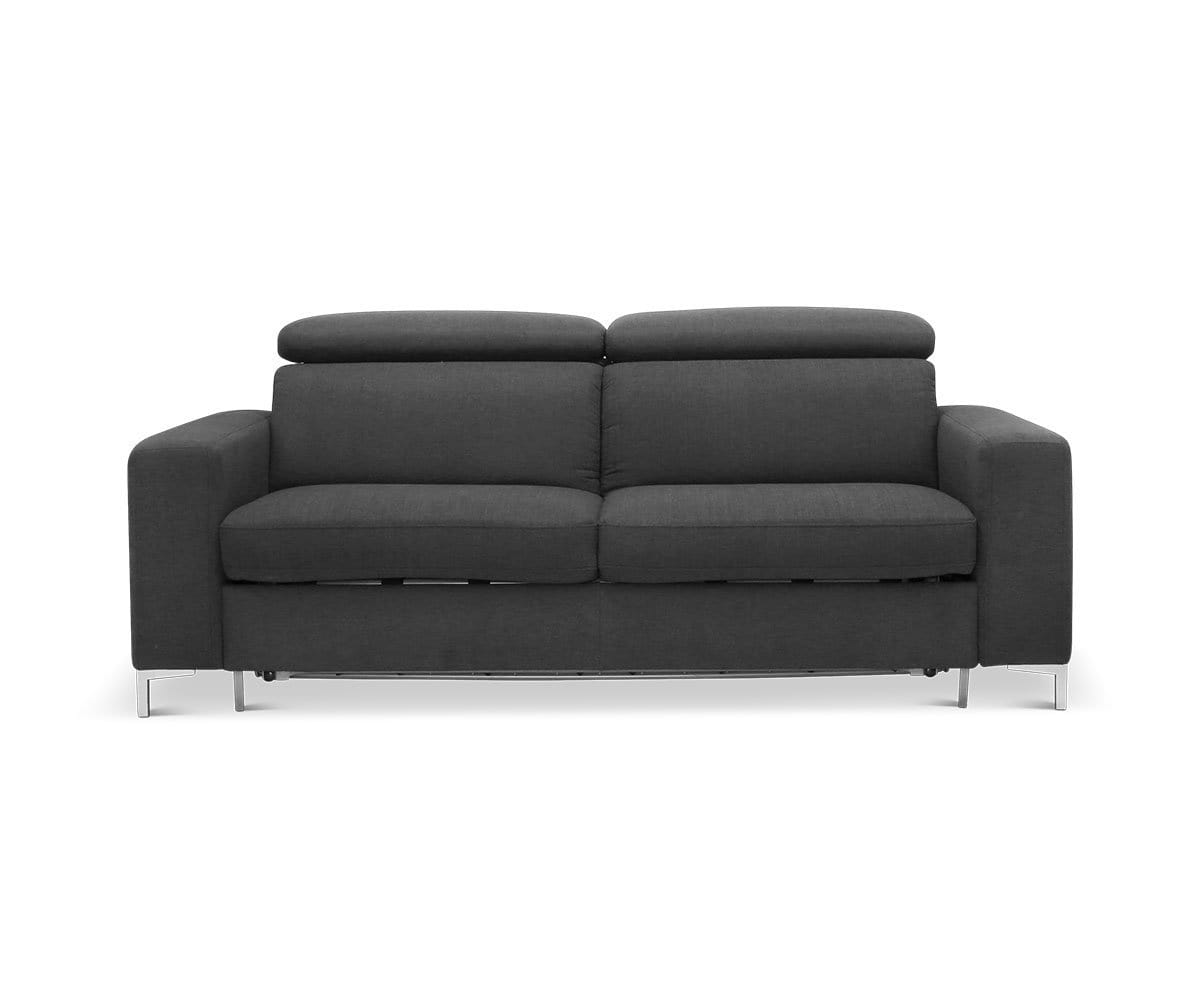 The Andrew queen sleeper brings attractive modern style to your home and makes hosting overnight guests a breeze. Thick, plush cushioning provides comfort and support. Adjustable headrests are perfect for switching from a conversational lounge-like feel to movie and entertainment mode. With a solid hardwood frame and chrome legs, it’s built to stand the test of time. Upholstered in our soft, unique LiveOn Performance Fabric, this sleeper sofa is moisture-repellant, stain-resistant, and designed for heavy-duty wear. A queen gel mattress is included.