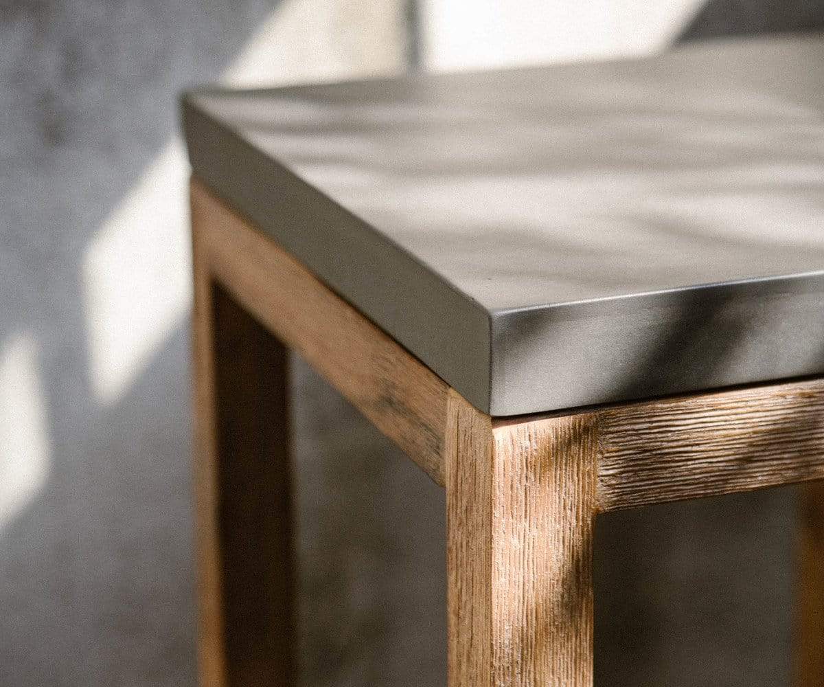 Incorporate the Atlas pedestals into your space for modern edge and openness. The tabletops are made from a faux-cement composite, which is lighter than cement for everyday use. The airy bases of these tables are crafted from solid acacia wood, which holds up to weathering. Frost-resistant and waterproof, these tables can be used indoors and out.