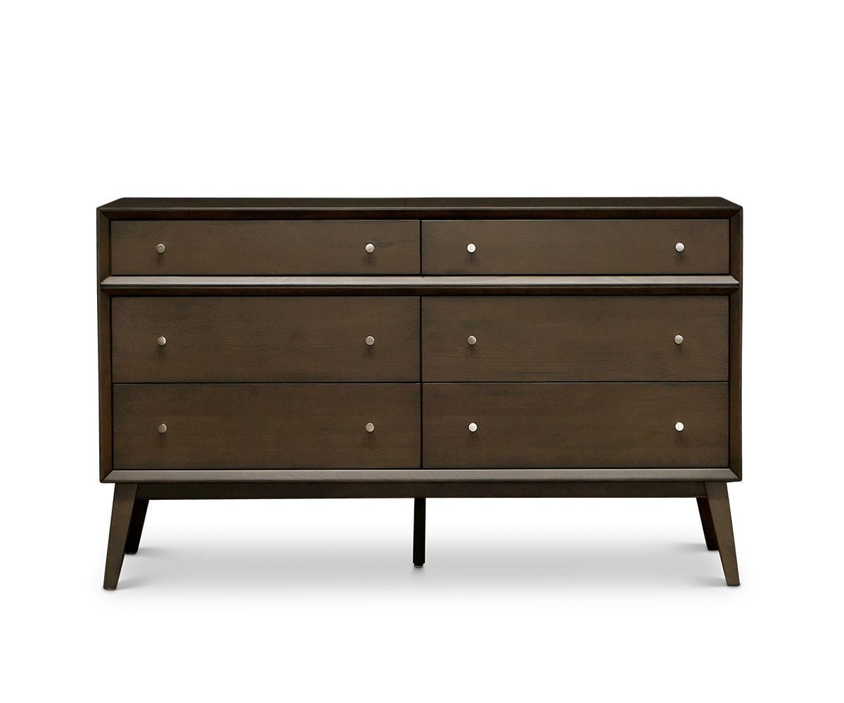 Refreshing your bedroom begins with refreshing your storage pieces. Crafted from solid beech, the Bennett double dresser's smoky color has a bold, modern tone. Six drawers of varying depth give you a wealth of storage options.