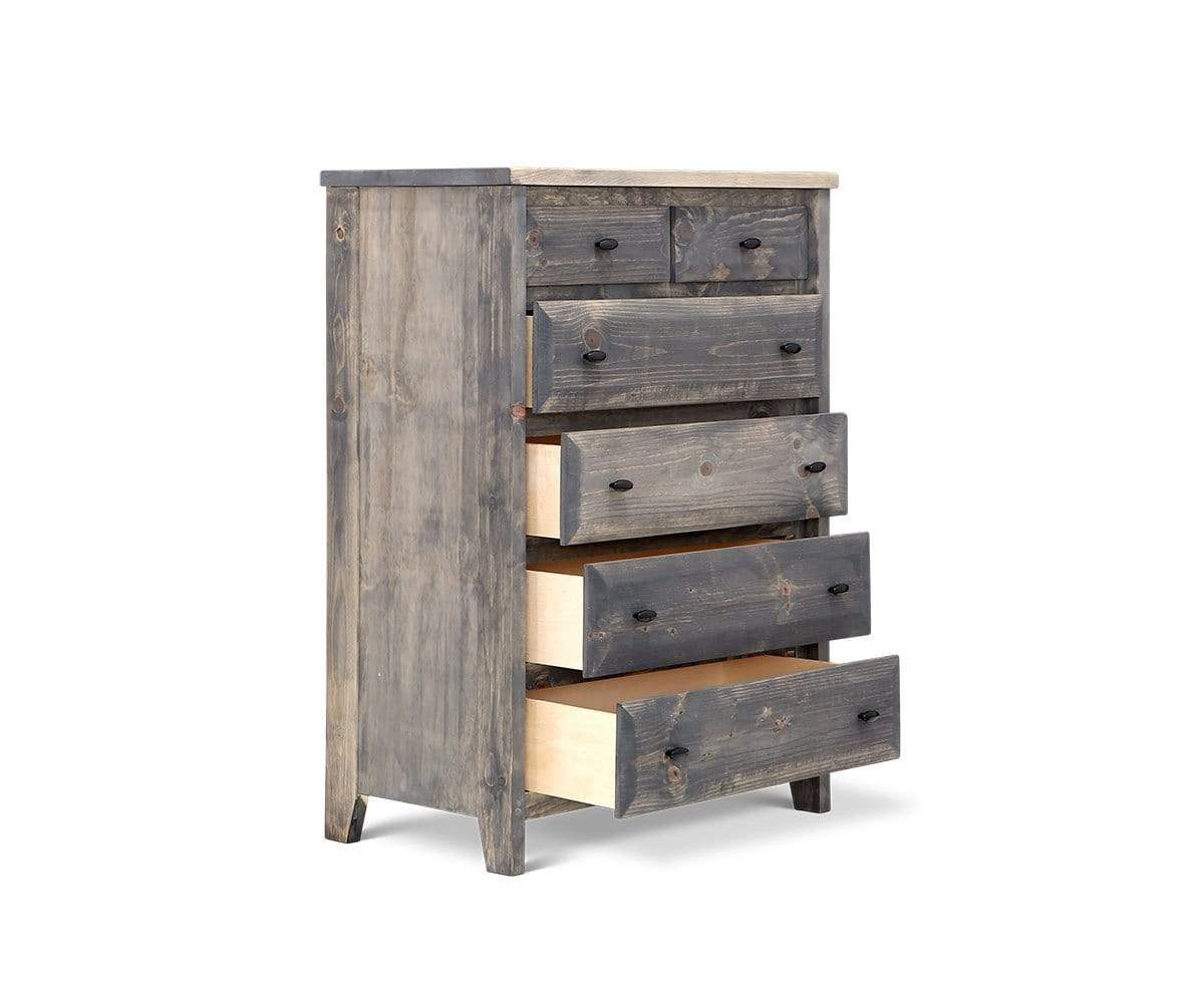 Quality-crafted storage that saves space? Yes, please! The streamlined, vertical design of the Brennan high chest makes it an ideal storage solution with six drawers for clothes and treasures. Plus, its made with a solid Northern California pine frame and finished with a grey driftwood stain, which allows you to sand and refinish if the surface is nicked.