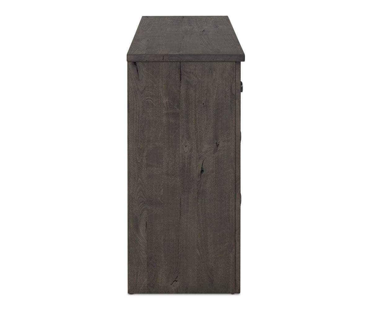 Find a place for everything with the Carter double dresser. Constructed of solid American alder wood with a grey stain, this dresser features six generous drawers. With quality construction and modern-meets-rustic style, this functional dresser will be part of your decor for years to come.