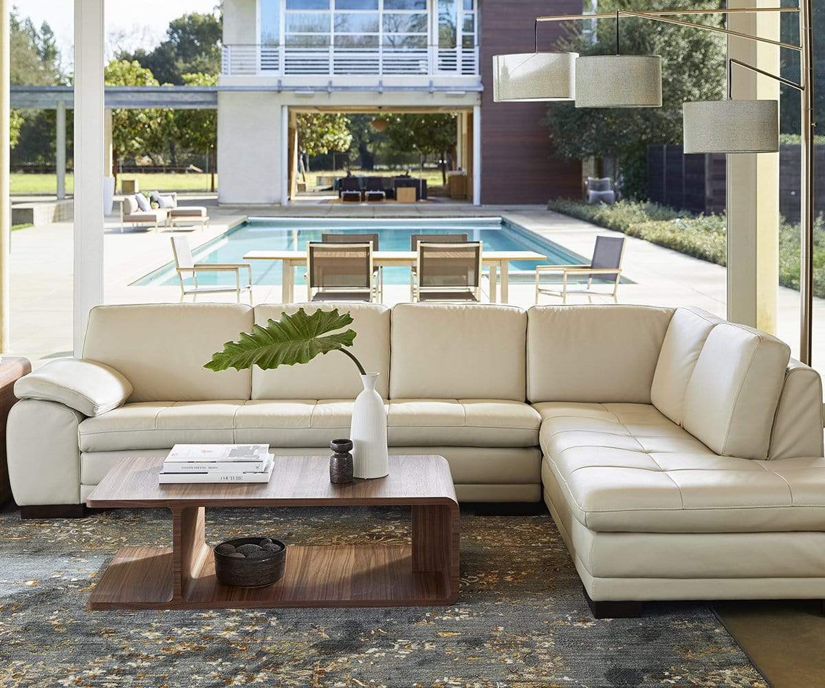 The Cercis all-leather sectional makes a bold statement with a strong silhouette. The clean lines of the plush leather seat back and detailed tufting on the seats combine for the ultimate in comfort and style.