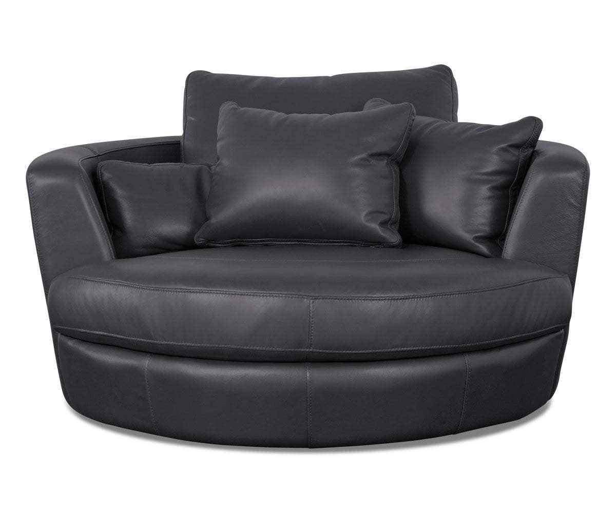 Sink into pure comfort with our Copel leather swivel lounge chair. Beautifully tailored with deep seated cushions, this stylish chair has room to curl up and read a good book or to lounge with friends to watch your favorite movie.