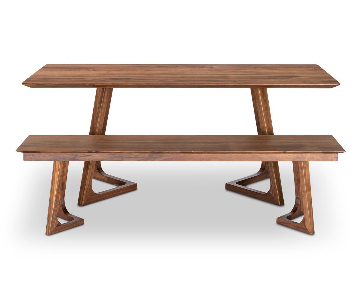 Welcome a mid-century modern touchstone to your dining space. The Cress rectangle dining table features a rich, warm walnut finish, highlighting the beveled edges of the tabletop that flow elegantly to the angled legs. This piece seats eight comfortably, so cozy gatherings are encouraged.