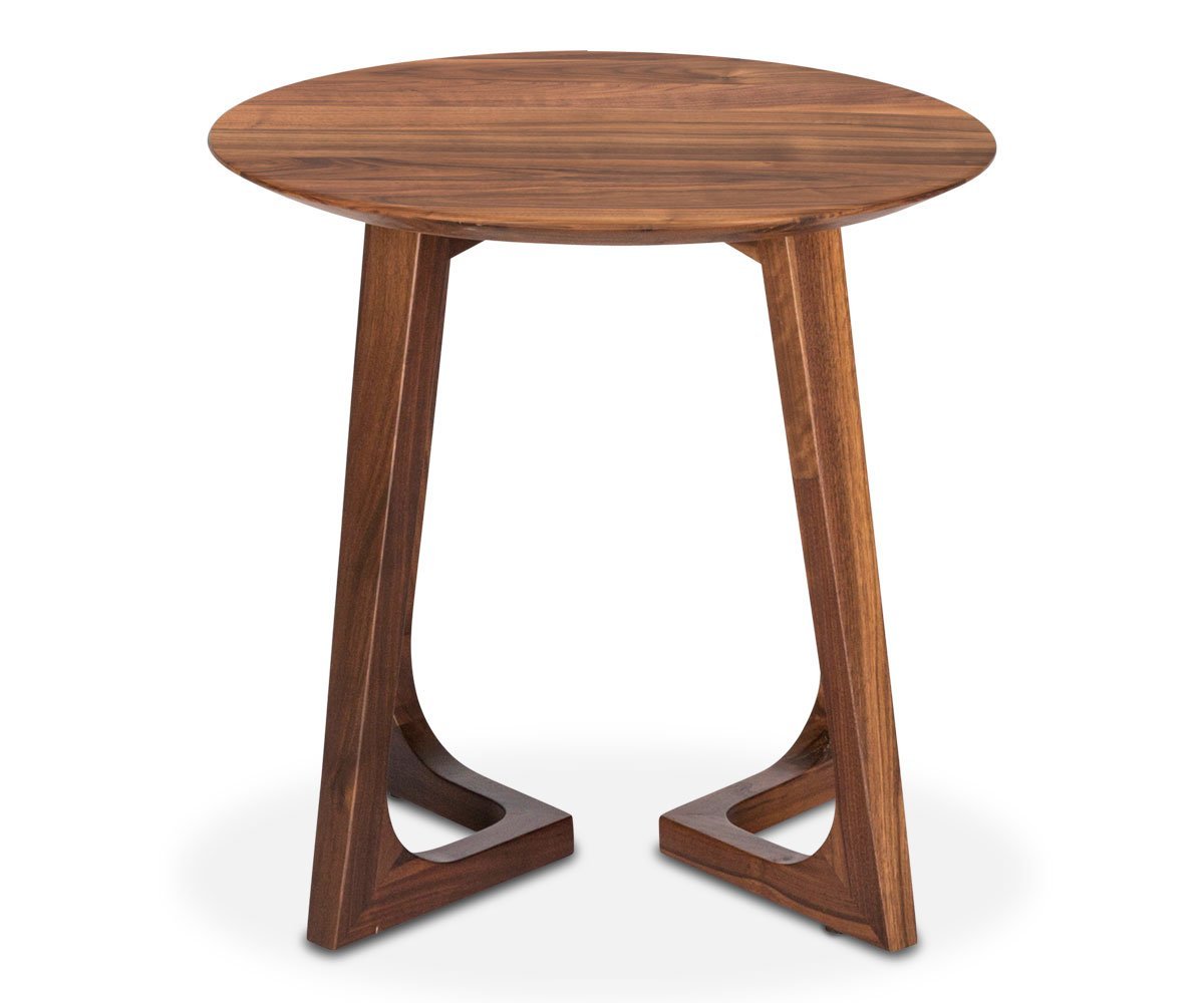 The welcoming charm of the Cress round end table stems from the rich, walnut finish, which instantly cozifies your living room. We love the mid-century style silhouette of the round tabletop and the uniquely angled legs add an elegant flourish.