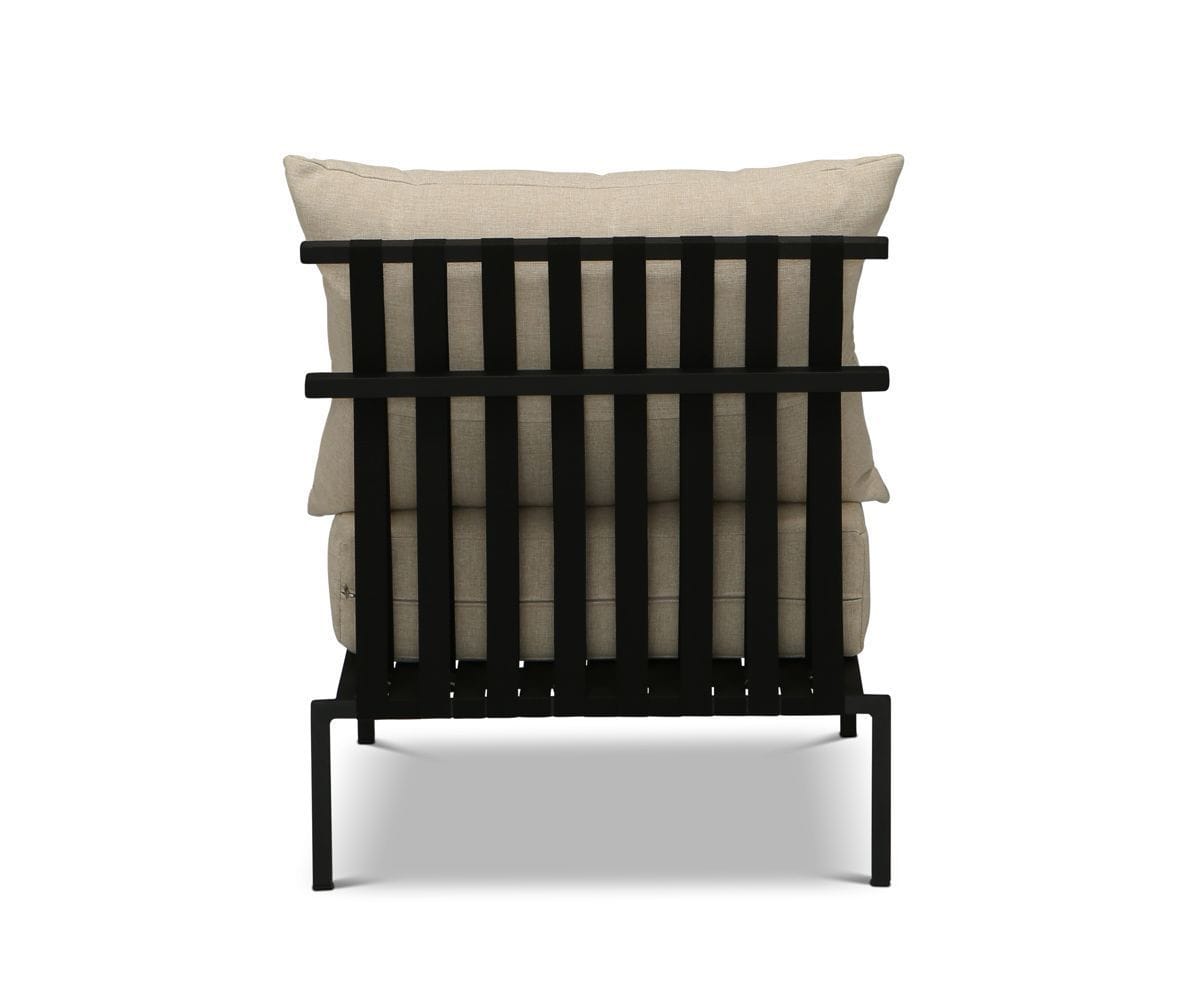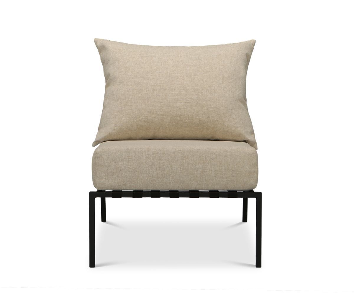 This is outdoor R & R at its finest. With the Da Costa armless chair, you're getting a mix of performance, comfort and style you won't find elsewhere. The black powder coated metal frame contrasts with the beige cushions for a resort-worthy look. The cushion is wrapped in Olefin outdoor fabric, which features a color fastness rating of 7-8 for powerful fade-resistant performance. It's also water-repellent, stain-resistant and mildew-resistant. Pair with the Da Costa sectional to turn your outdoor area into a relaxing oasis.