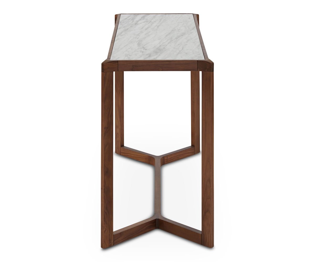 From every angle, you will appreciate the intriguing design of the Eira console table. The smooth white marble top embedded in the solid walnut frame creates a stunning and durable surface ideal for your entryway or living area.