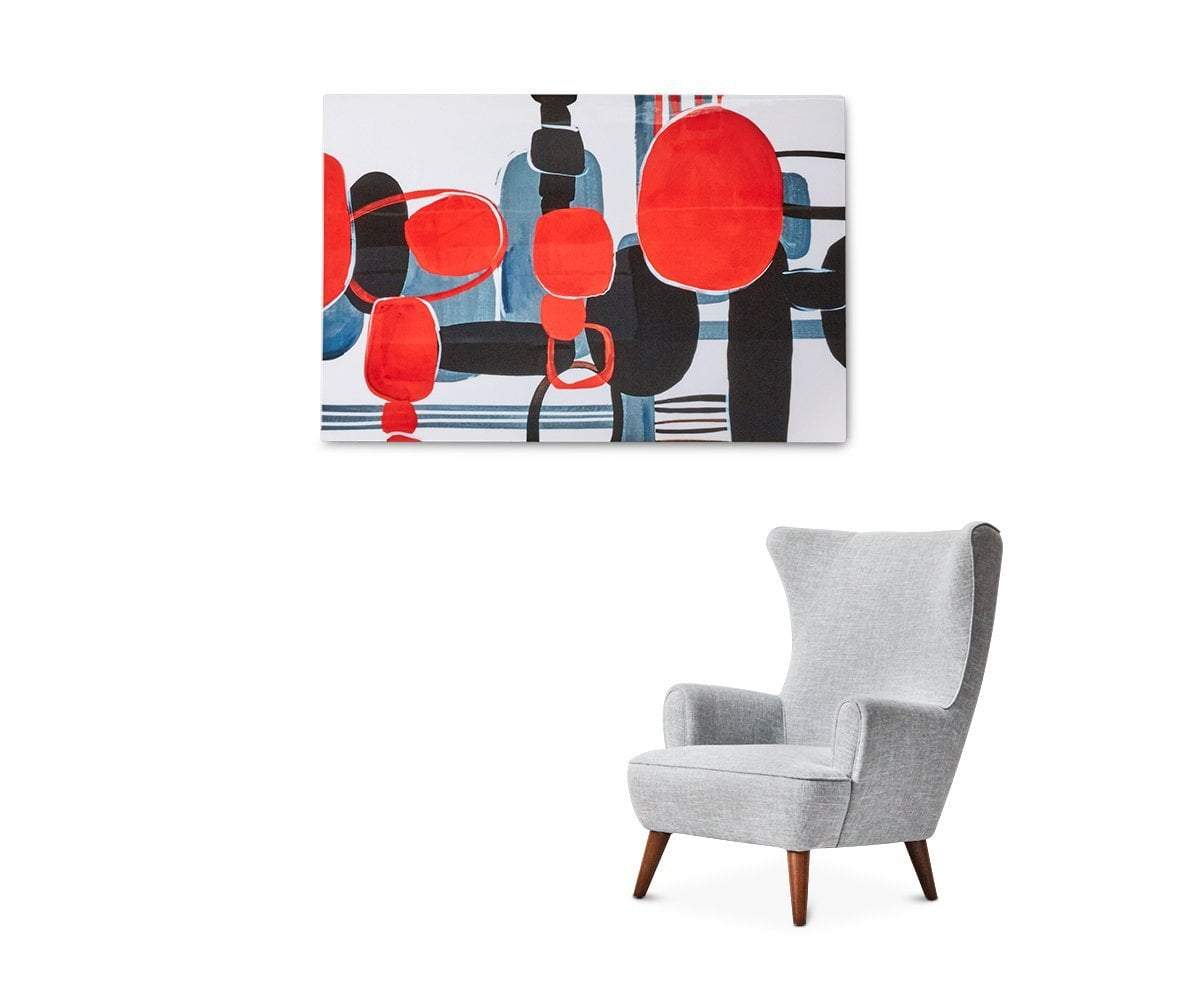 Add the Far Away Places wall art to your room of choice for a curated contemporary look. Its high gloss sheen and abstract design ignite the imagination. Bold colors against a light backdrop make this piece a stunning complement to your space.