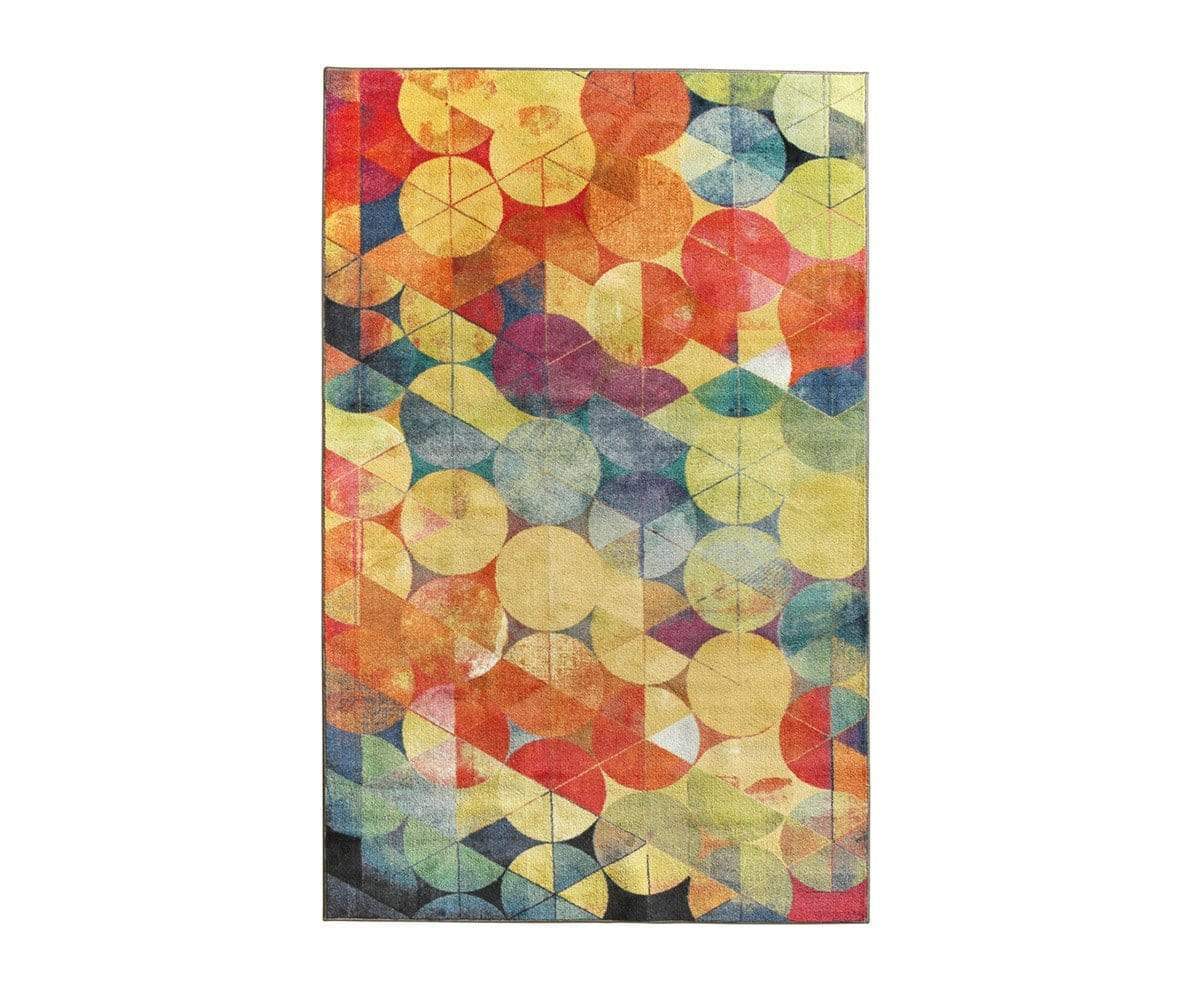Lay the foundation for a colorful room with the Full Circle rug. The multicolor abstract geometric pattern makes an eye-catching statement. Made from 100% nylon for easy cleaning and durability.