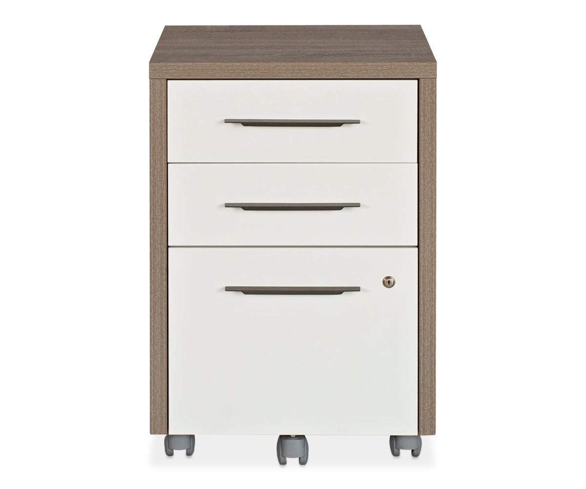 The Gammel mobile file pedestal offers organization and storage space for any office setting. Made in Italy from eco-friendly materials, the oak wood finish of the frame contrasts beautifully with the white high gloss drawer fronts. The top drawer locks for privacy.