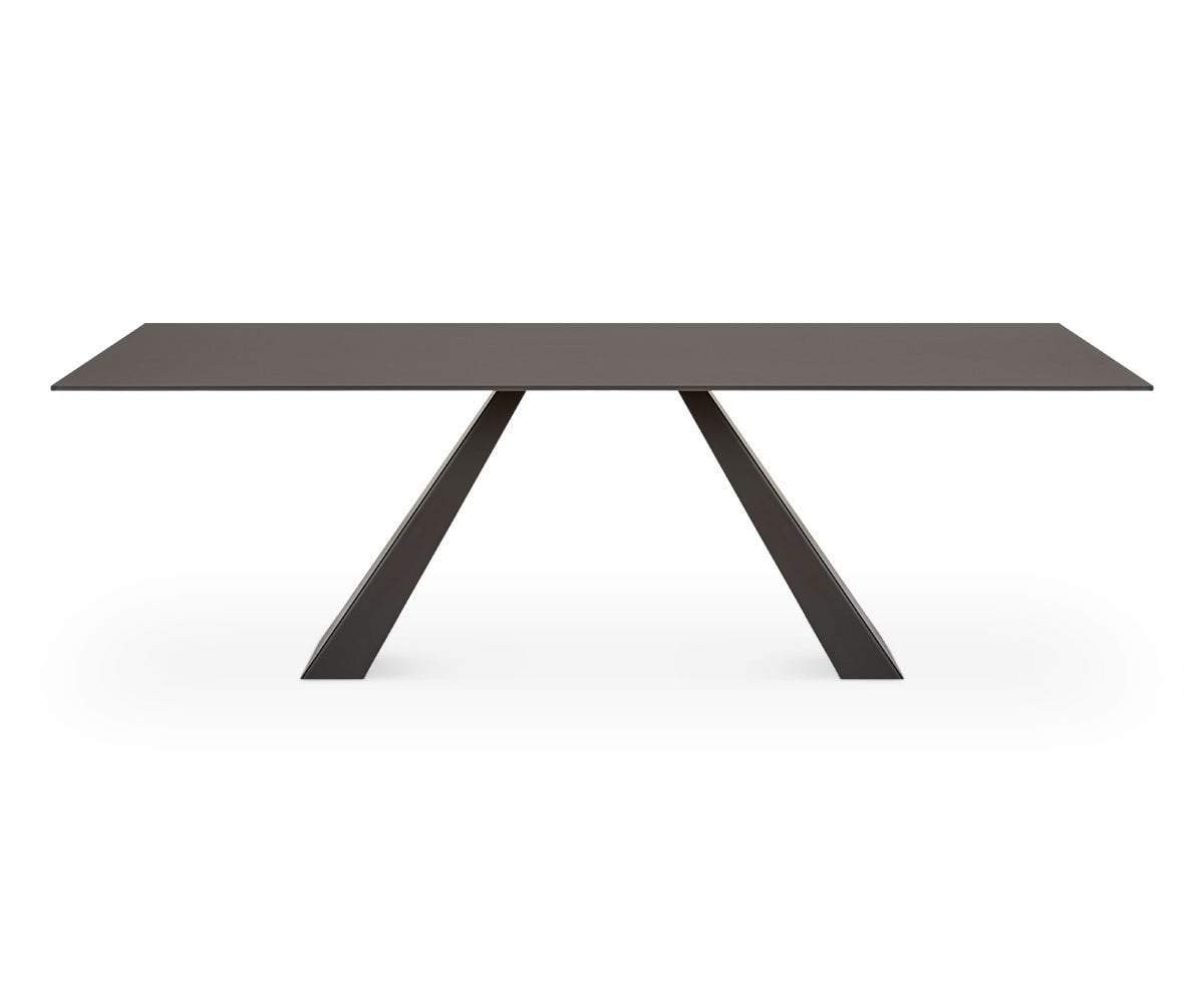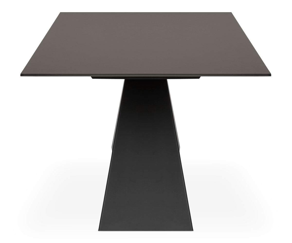 The Gunnar 94.5” table stands like a sculptural piece of modern art in your dining room. Two flared metal legs set at an angle support the sleek, grey tempered glass top to create this striking piece. Entertain in grand style as you comfortably seat ten.