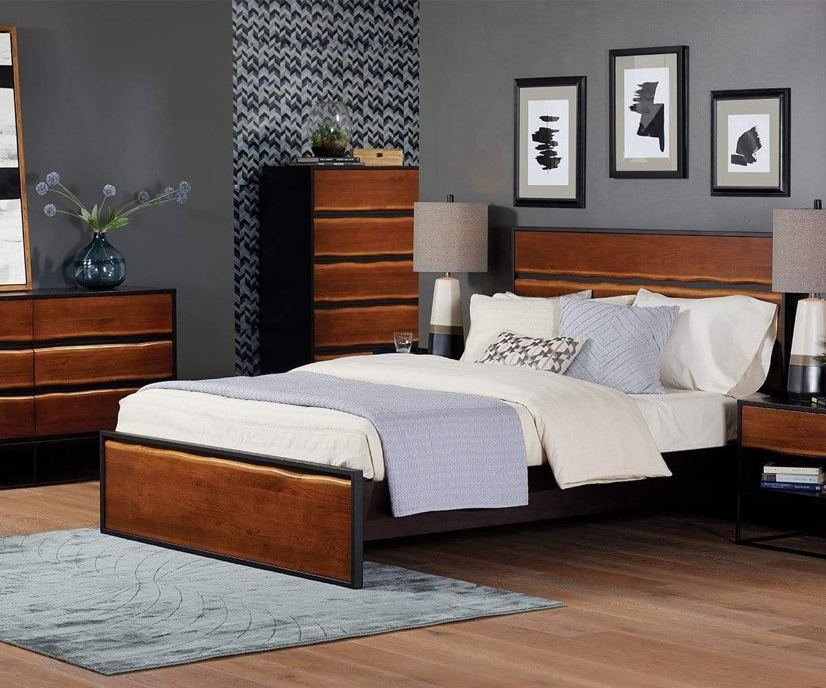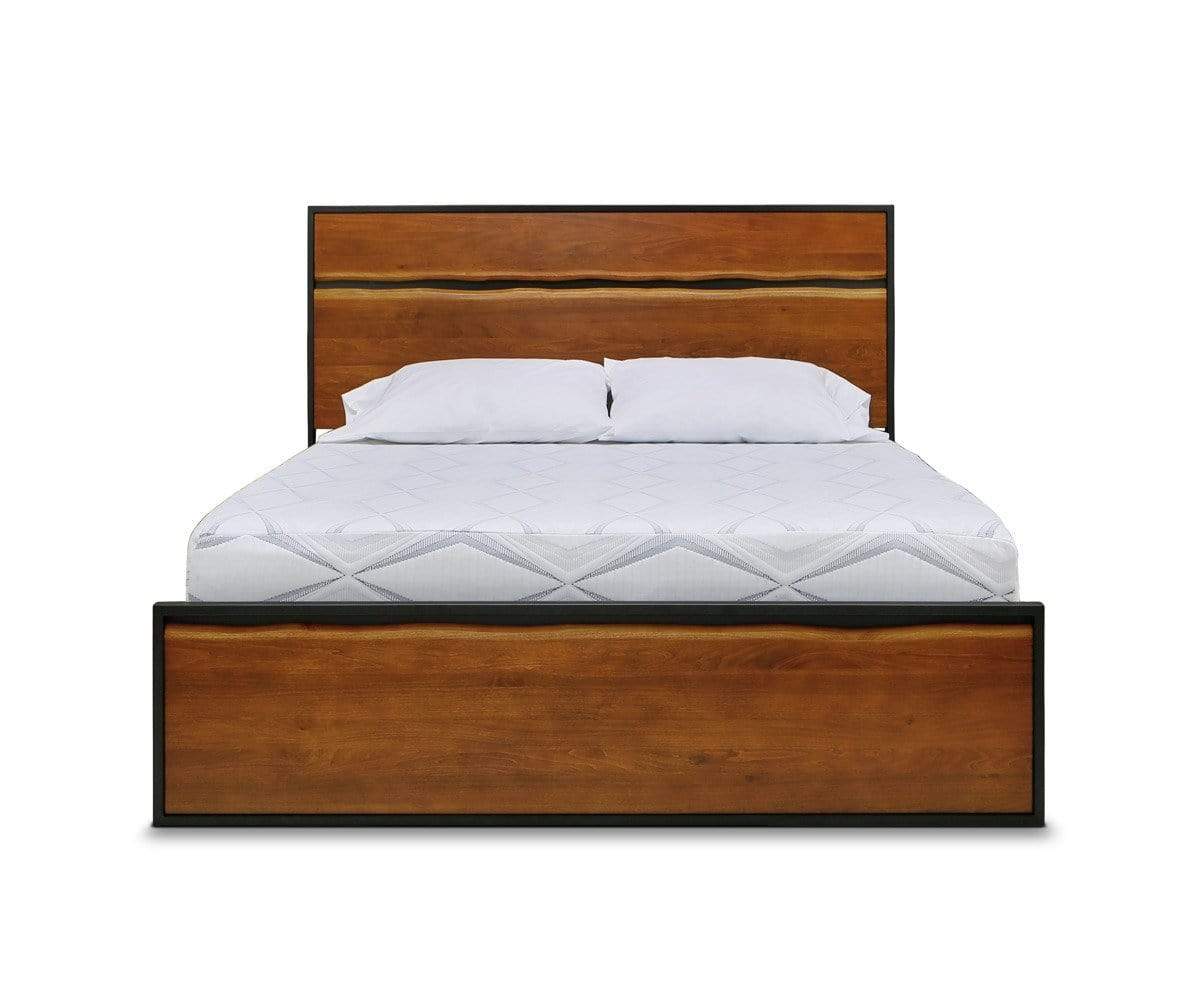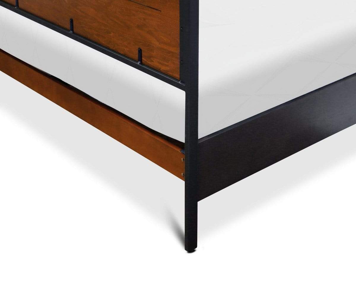 Featuring a rustic industrial style, the Hasse bed offers clean lines and dynamic materials that make for a stylish night’s rest. The frame is made from durable metal with a black finish and solid American poplar with oak veneers. A rich timber brown stain completes the look. This bed includes slats, no box springs are needed.