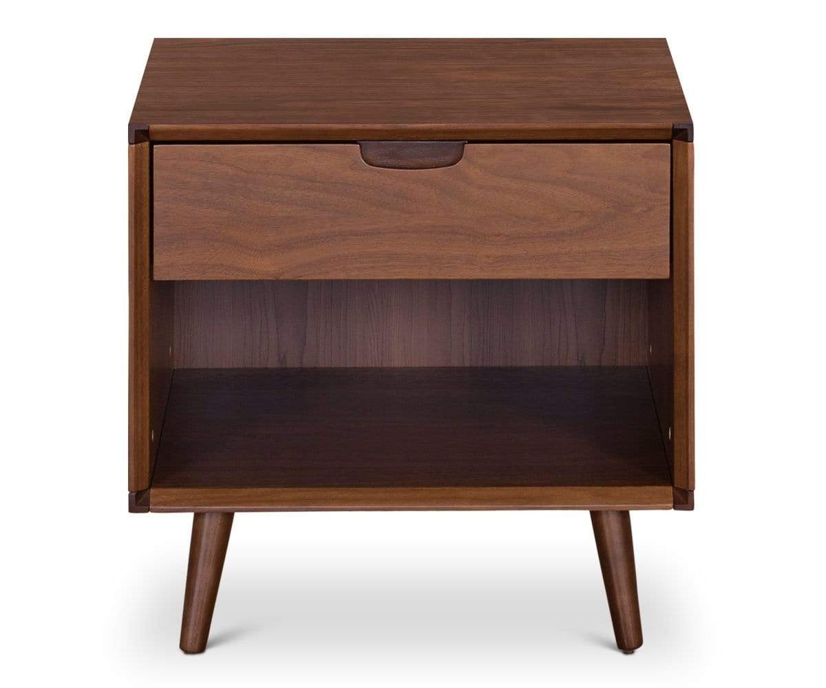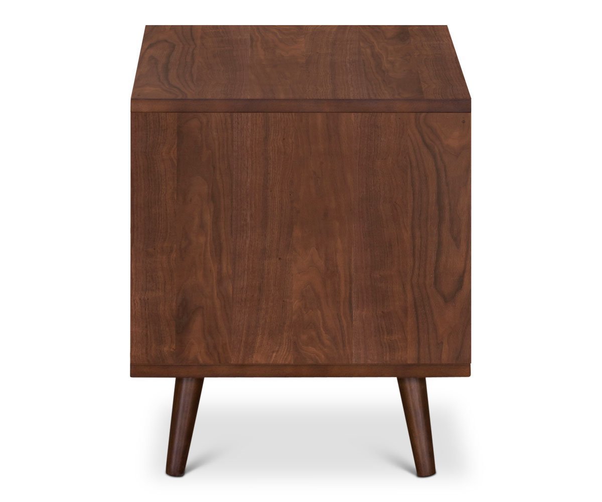Drawing inspiration from mid-century designs, the Juneau nightstand is an attractive choice for any bedroom. The handsome silhouette contains a single drawer with smooth-glide functionality, an ample cubby space and tapered legs.