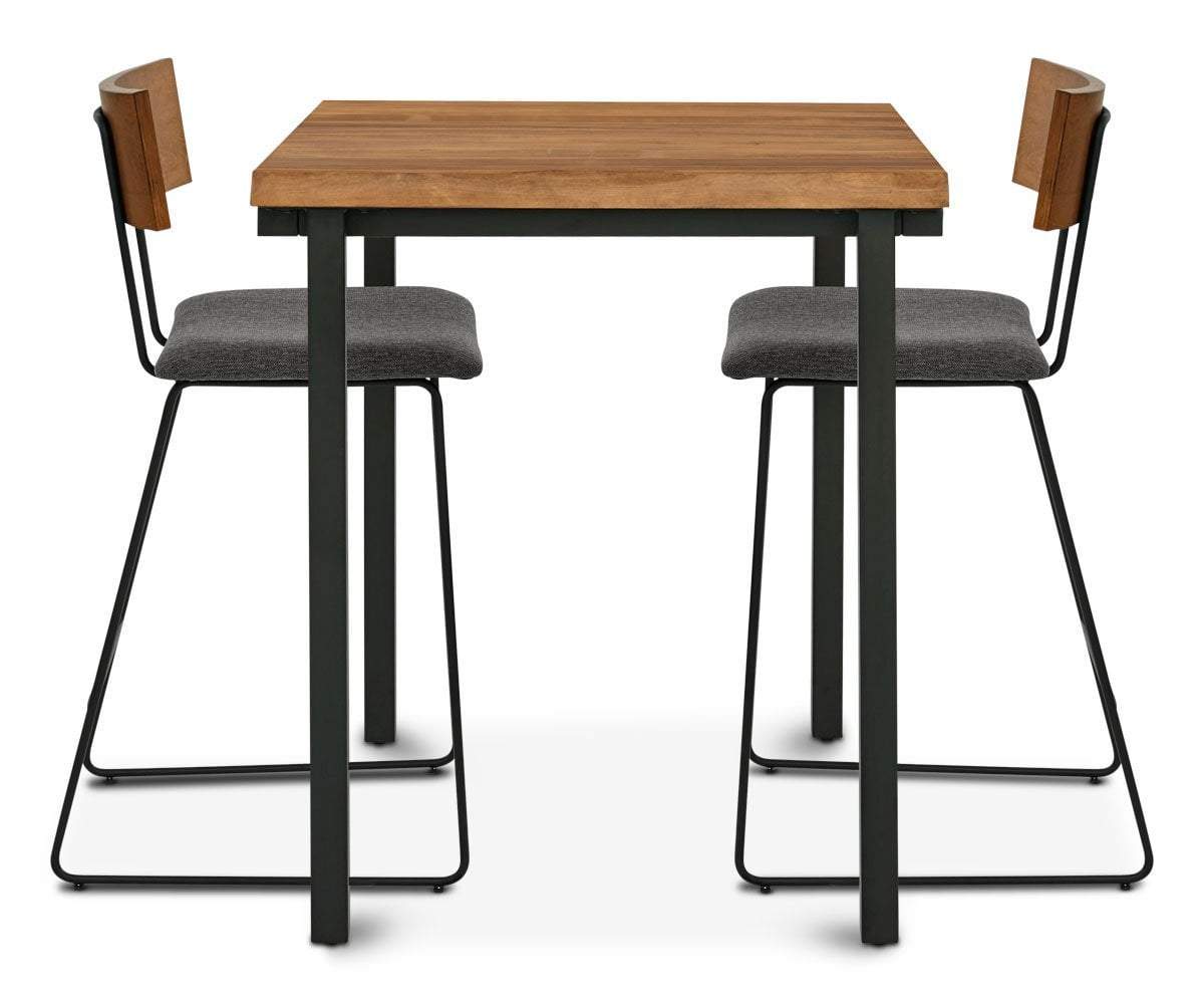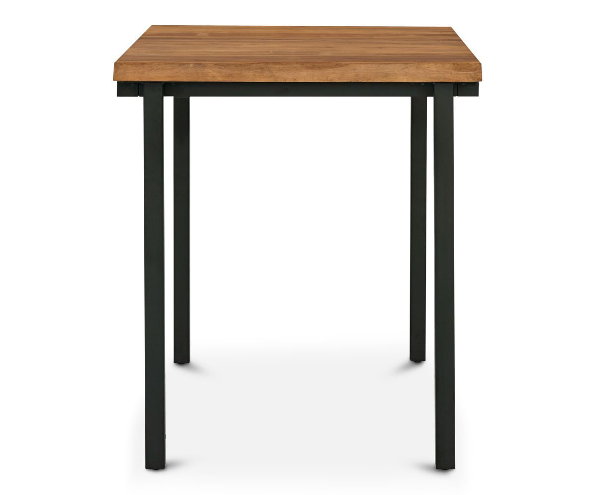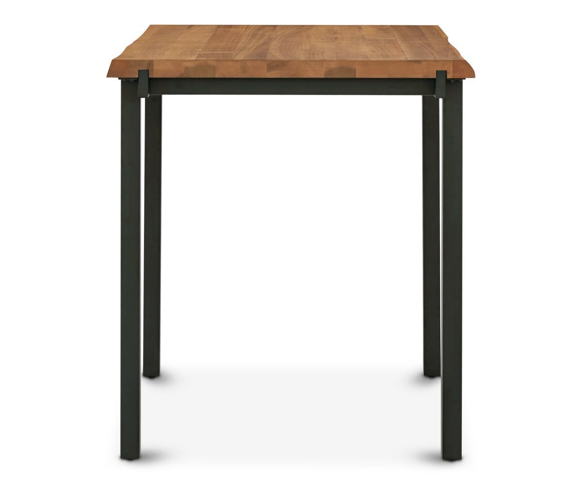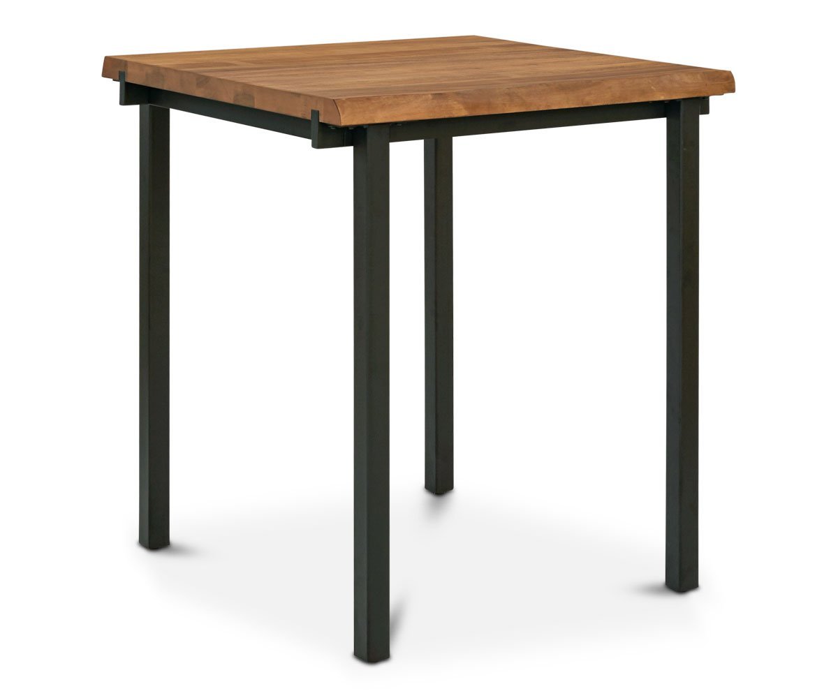 Add rustic and industrial design to your casual dining space with the Karsten square bar table. The black powder-coated metal frame supports the solid American poplar top in attractive earthy tones and cut with a live edge. Perfect for informal meals or entertaining guests, the combination of elements create a piece worthy of the attention it receives.