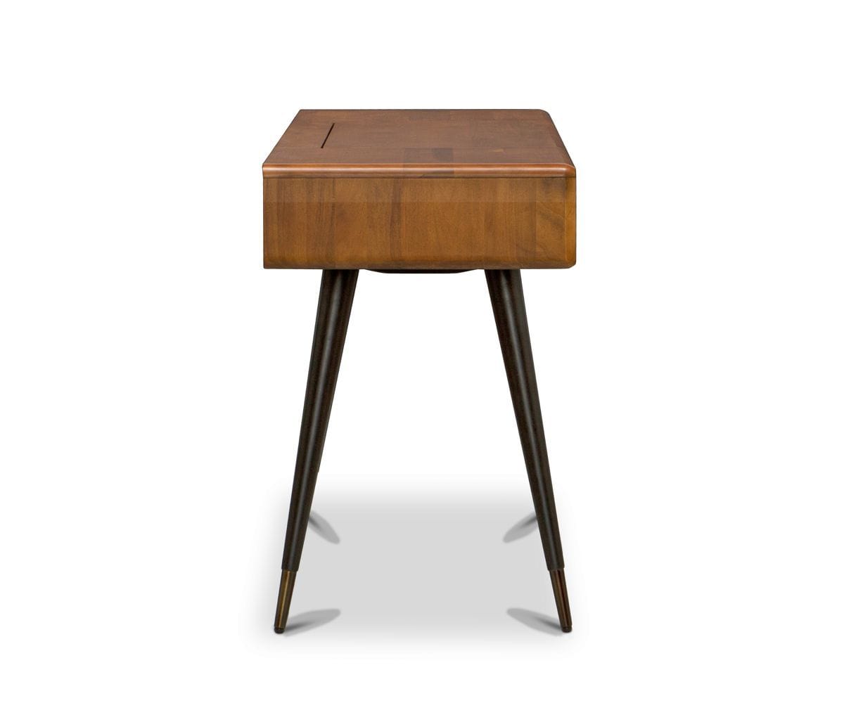 Did someone say statement-maker? The Lanson vanity is one of our newest favorites, a piece that melds exquisitely crafted storage with mid-century aesthetics in a classic way. Two drawers stash necessities, while the flip-top opens to reveal a mirror and segmented compartments. Angled, brass-capped legs give this a delicate, stylish finishing touch.