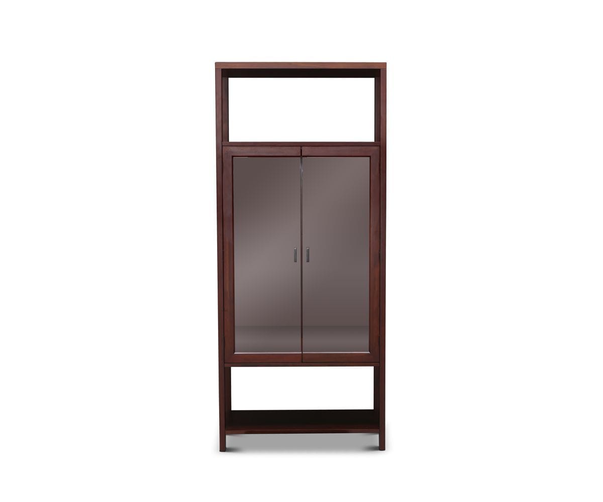 When you pair solid wood with an open shelving design, you get a fascinating blend of minimalism and warmth. The Lark bookcase is crafted from mahogany and finished with an earth-toned stain. This configuration features 5 shelves and a cabinet section in the middle with glass doors to provide you with ample storage and display space.