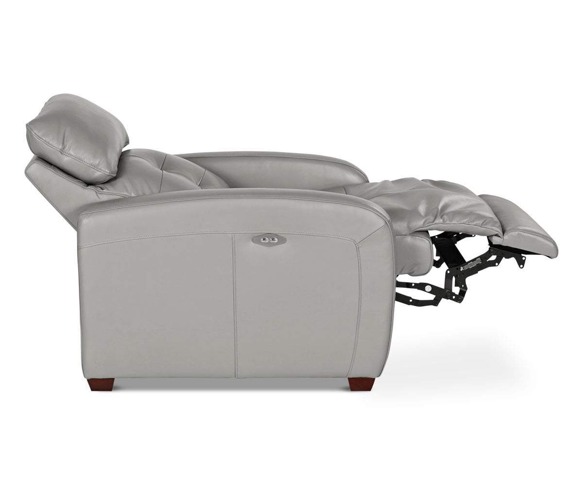 Experience luxurious cushion support from head-to-toe with the Larus power recliner. The touch of a button allows you to easily glide into position with just the right amount of recline. Tailored in top grain leather with ample padding and adjustable headrest.