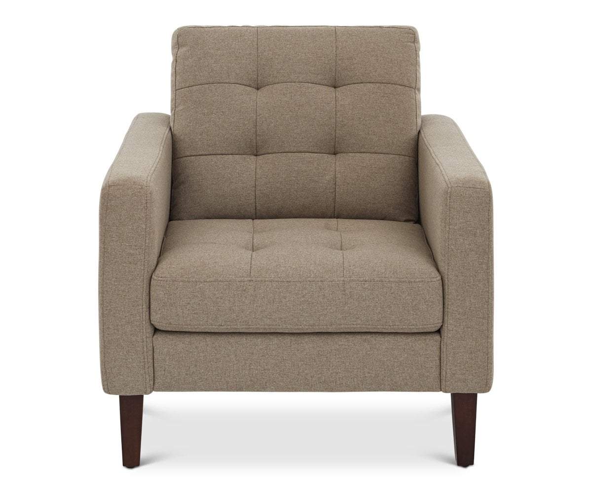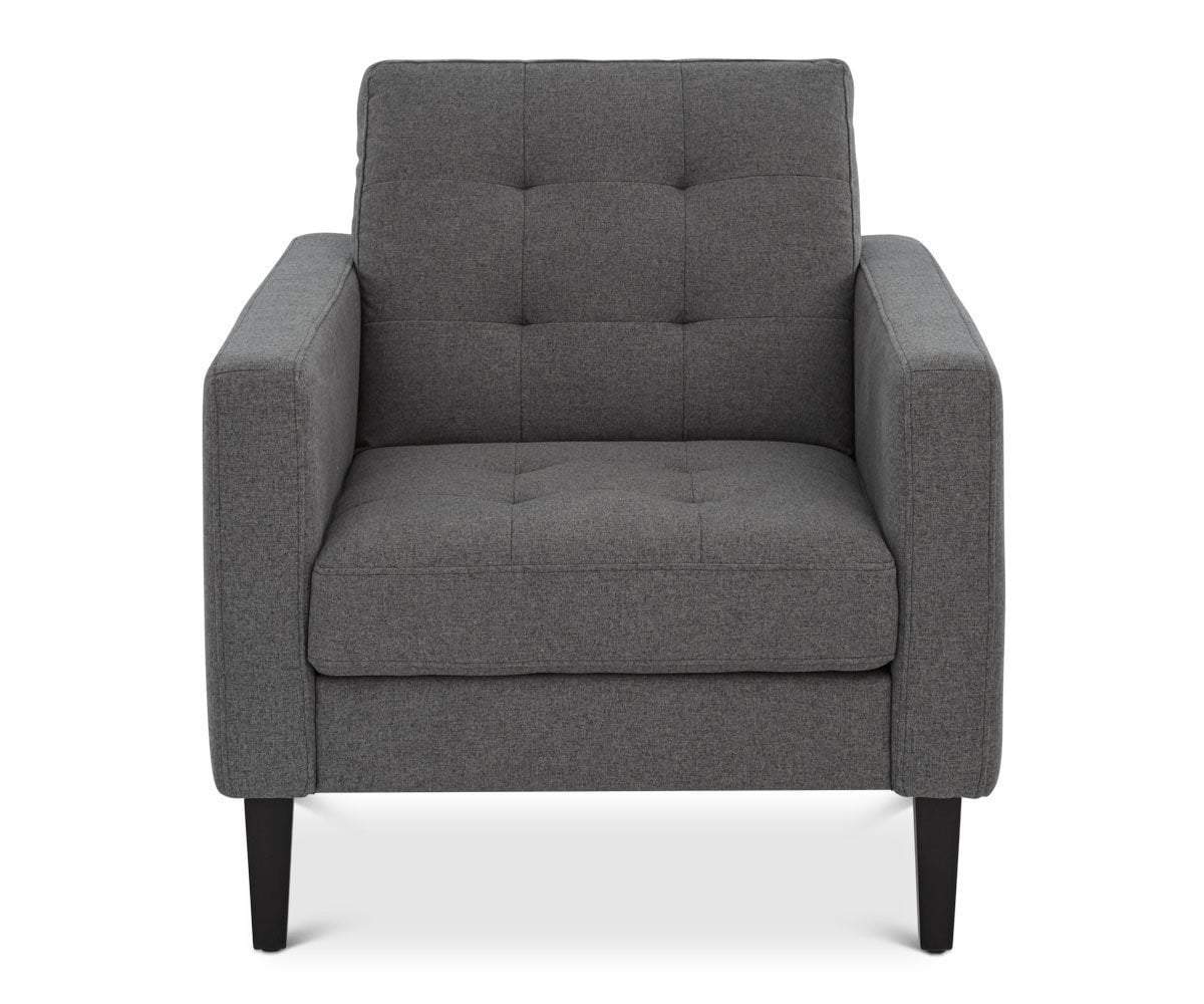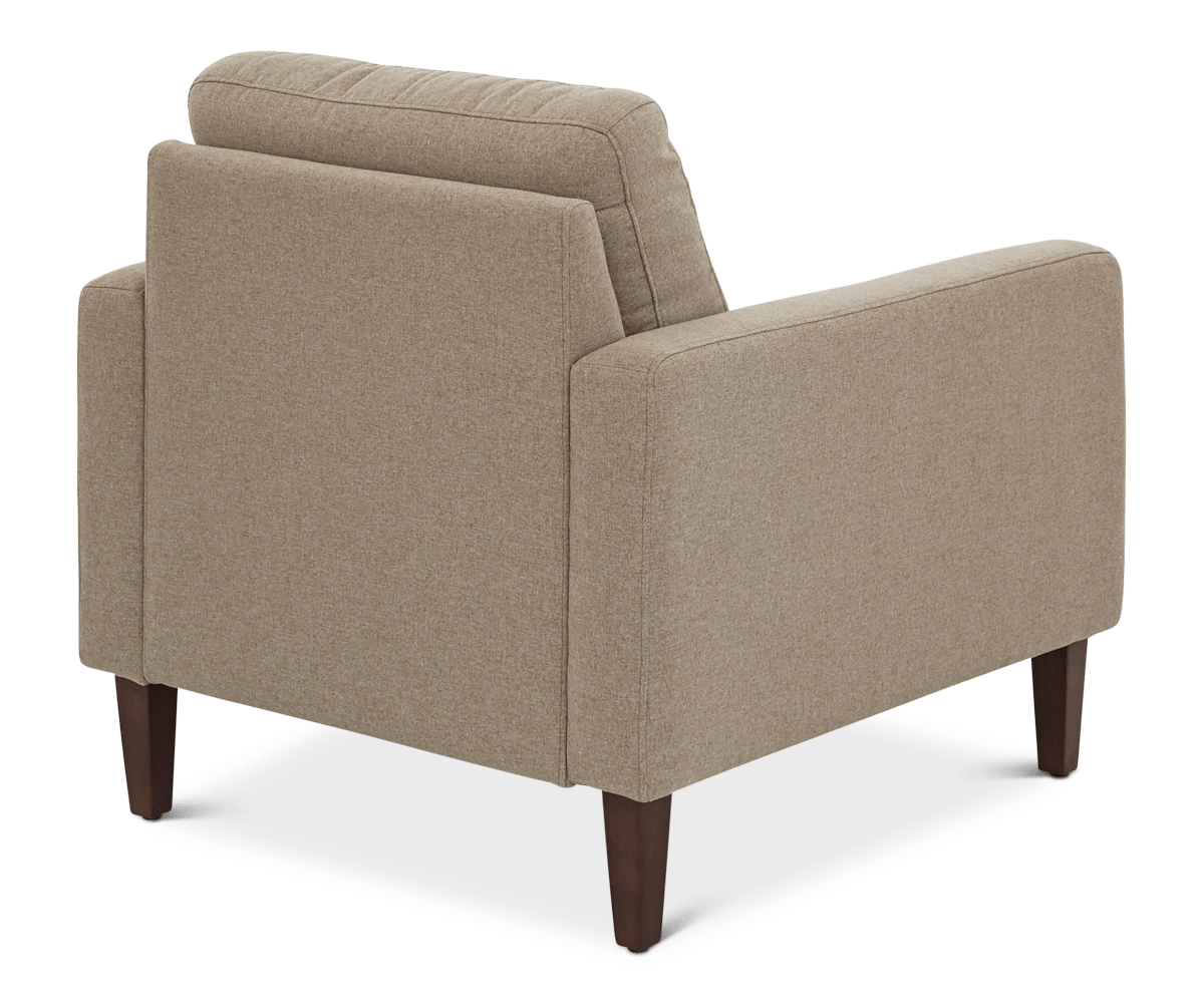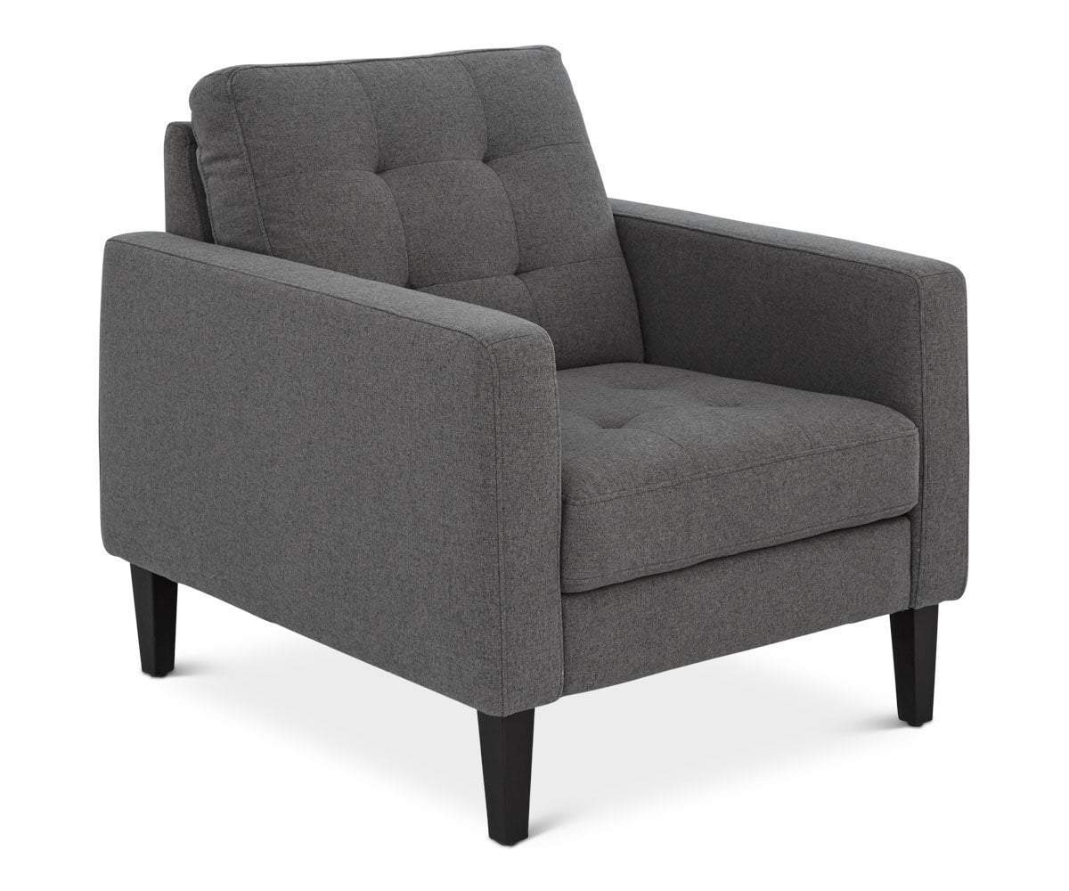 The Laura chair quickly becomes a favorite spot to relax in your living space. As an update on the vintage club chair, its design maintains the all-around comfort, yet incorporates slim lines and fresh angles. The tufted upholstery captures traditional appeal, while the graceful profile down to the tapered legs, creates the modern look.