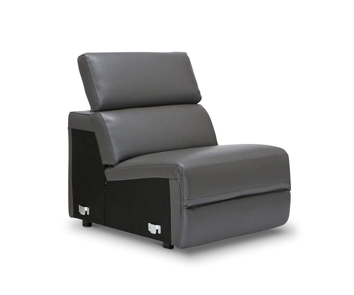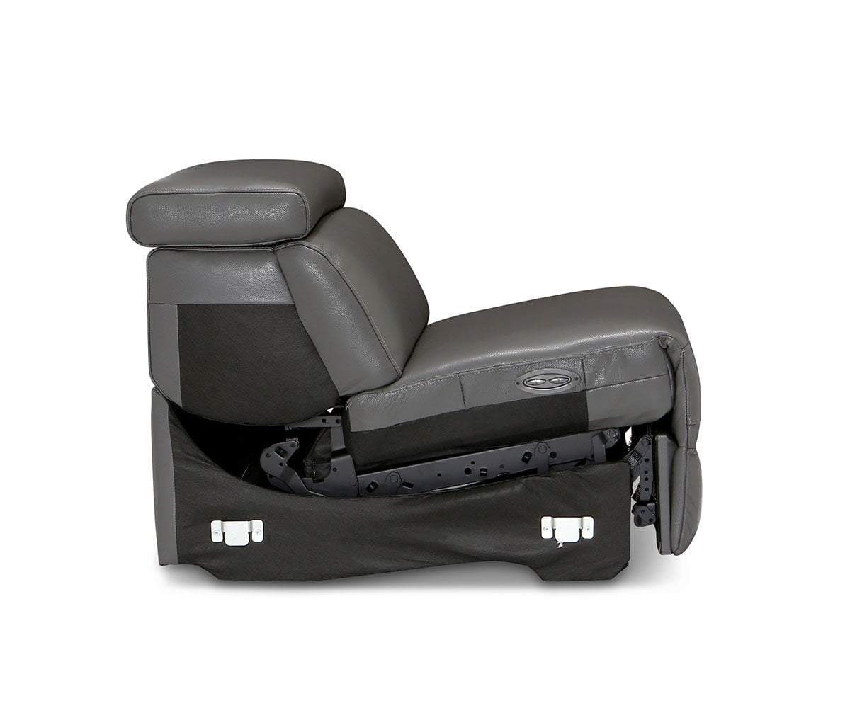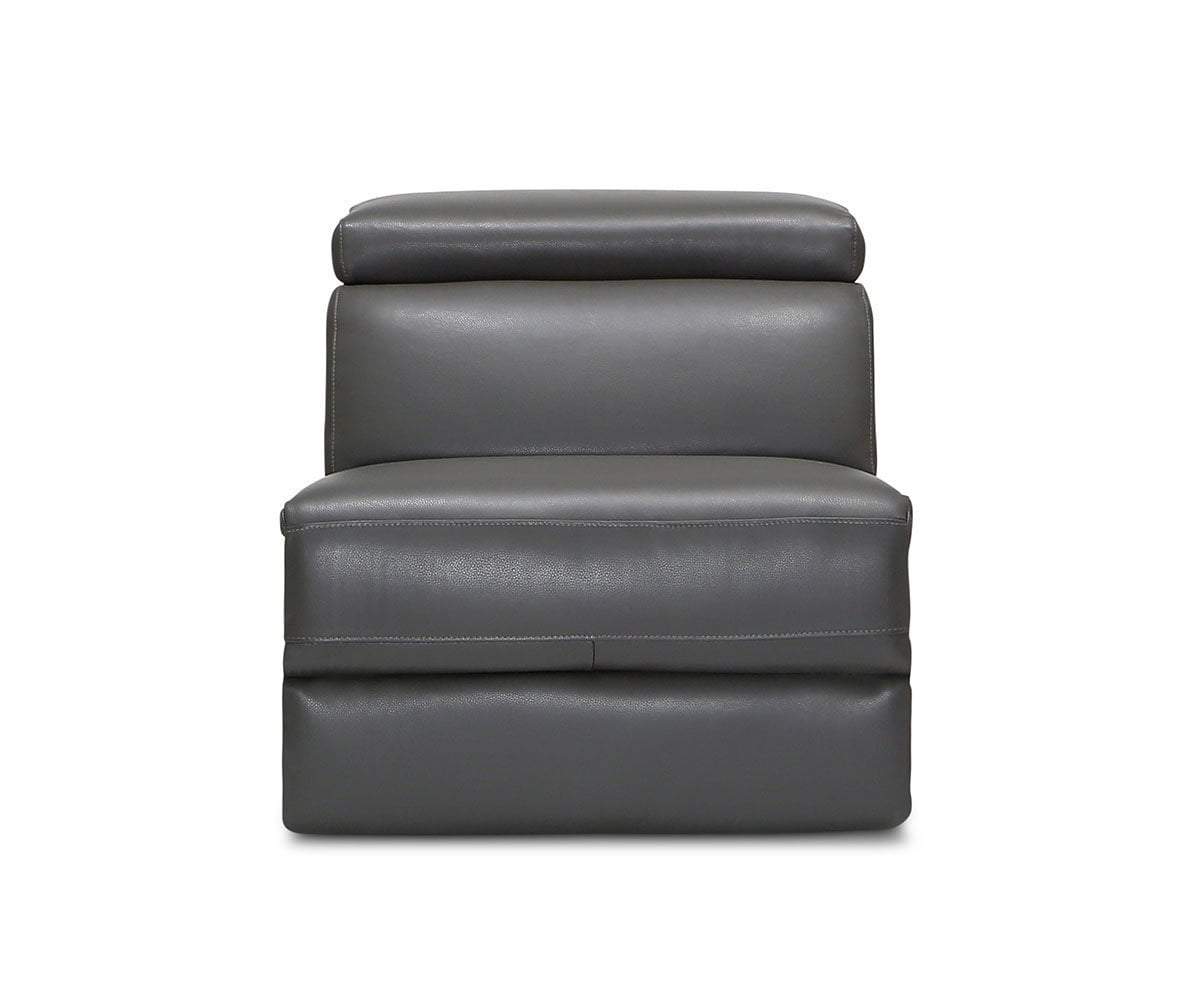 Extend your Lewen power reclining sectional with a power reclining armless chair or an additional stationary armless chair. Rich leather upholstery and a deep seat make either one a stylish and welcome addition. The clever design allows it to lock into place on the right or left side. These modular components are sold separately and not meant to be used on its own.