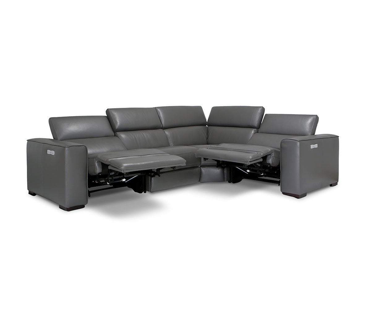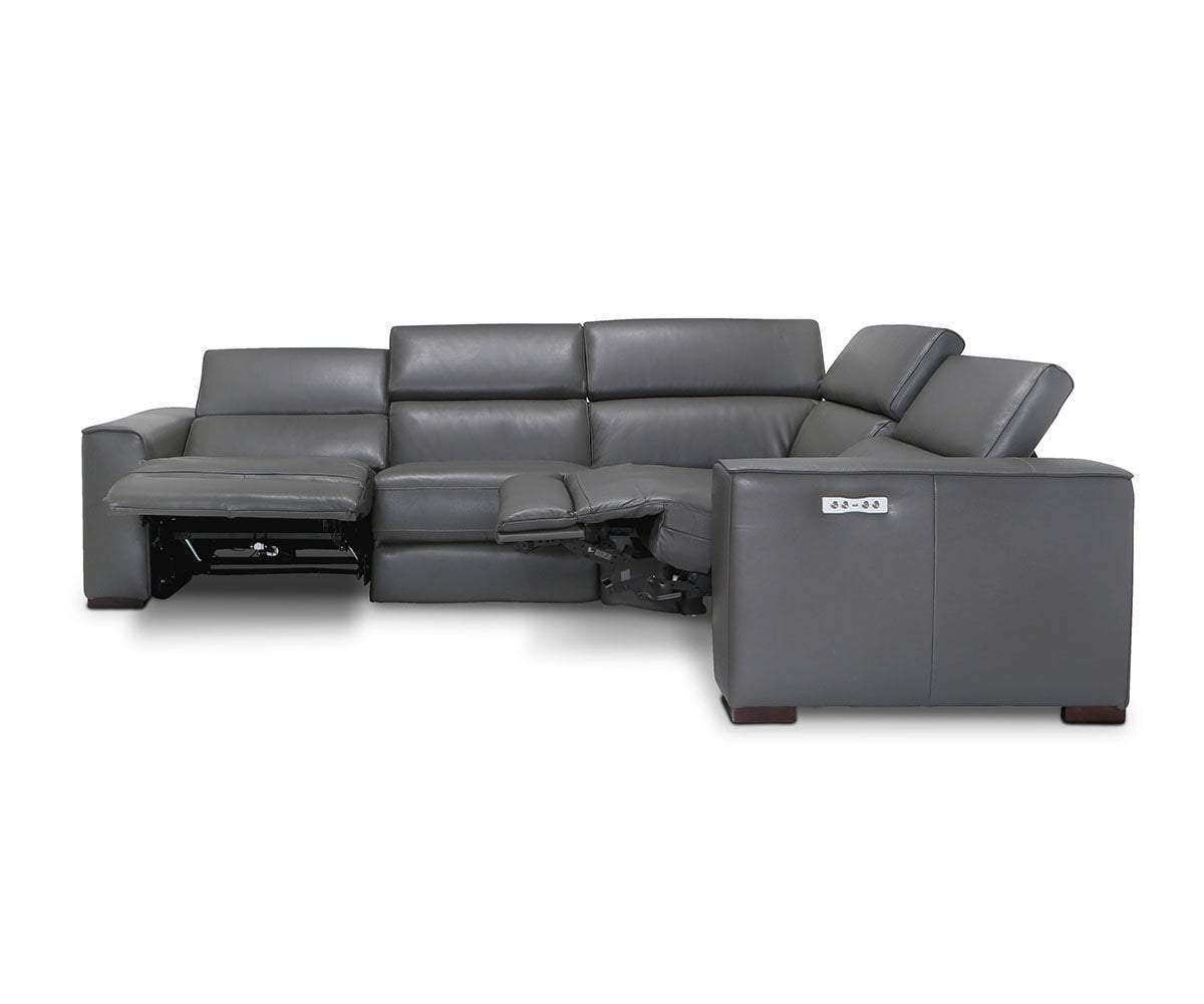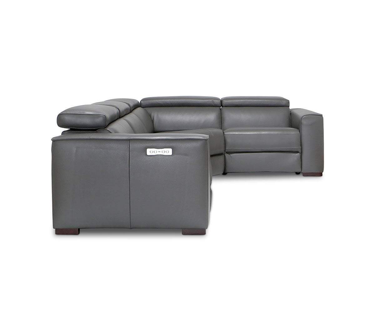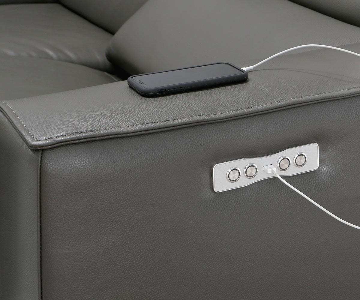Experience the utmost in relaxation with the Lewen power reclining sectional. Luxurious top grain leather upholstery wraps around the plush comfortable cushions of this handsome piece. Featuring two power reclining seats, power adjustable headrests, a cozy corner section, one stationary armless chair, plus built-in USB ports on each arm, you and your loved ones will be able to sit back, stretch out and enjoy quality time at home. This four piece powerhouse can be arranged left or right facing.