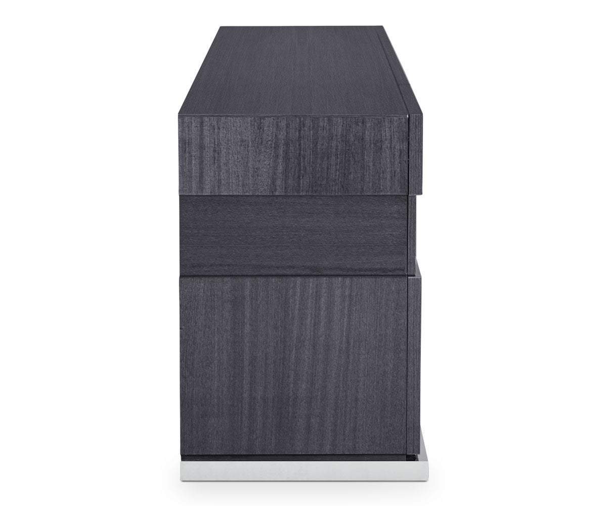 Bring true Italian design into your dining room with our unique Mondiana 4-door sideboard. Expertly crafted in a European grey koto veneer with a protective high gloss finish. The sideboard features a built-in felt lined cutlery drawer for all your special dinnerware and four doors with plenty of room for storage.